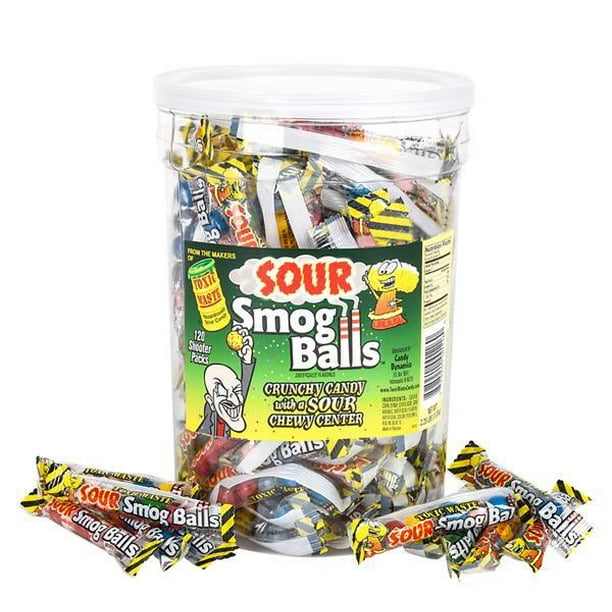 Toxic Waste Smog Balls: The sour crunch you'll munch by the bunch is packed with six different yummy sour flavours;